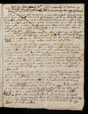 Letter, from Antoni van Leeuwenhoek to the Royal Society, dated at Delft
