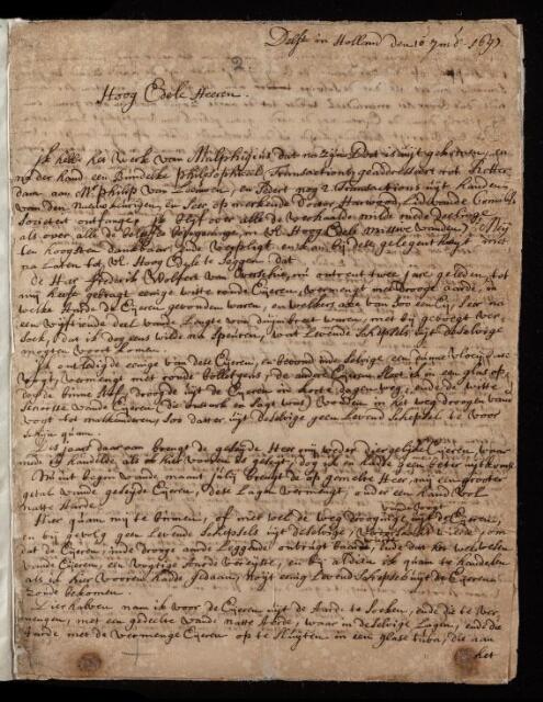 Letter, from Antoni van Leeuwenhoek to the Royal Society, dated at Delft