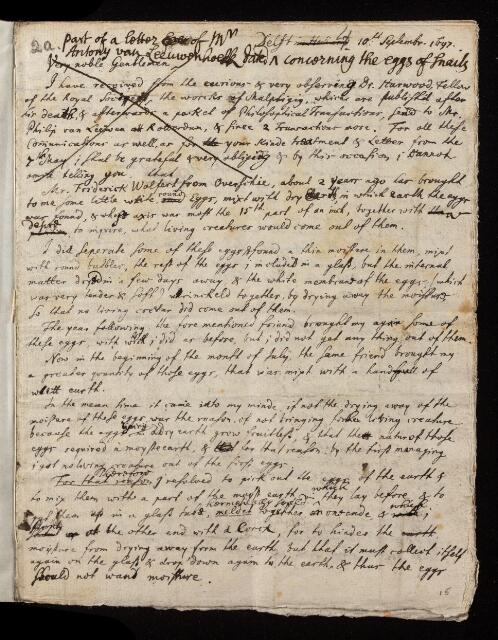Antoni van Leeuwenhoek, Translation of a letter, from Antoni van Leeuwenhoek to the Royal Society, 01 January 1697, EL/L3/4, The Royal Society Archives, London, https://makingscience.royalsociety.org/items/el_l3_4/translation-of-a-letter-from-antoni-van-leeuwenhoek-to-the-royal-society, accessed on 11 March 2026