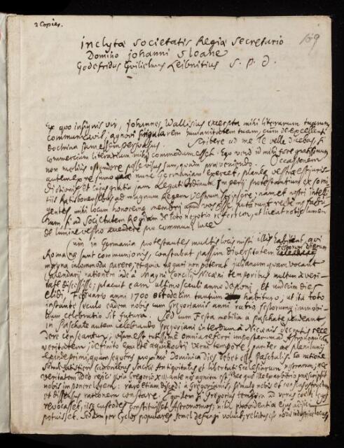 Gottfried Wilhelm von Leibniz, Gottfried Wilhelm Leibniz, Letter, from Gottfried Wilhelm Leibniz to Hans Sloane, dated at Hanover, 30 January 1700, EL/L5/109, The Royal Society Archives, London, https://makingscience.royalsociety.org/items/el_l5_109/letter-from-gottfried-wilhelm-leibniz-to-hans-sloane-dated-at-hanover, accessed on 15 January 2026