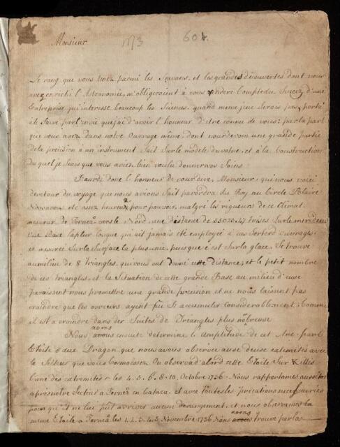 Pierre Louis Moreau de Maupertuis, Pierre-Louis Moreau de Maupertuis, Letter, from Pierre Maupertuis to [James] Bradley, dated at Paris, 27 September 1737, EL/M3/60b, The Royal Society Archives, London, https://makingscience.royalsociety.org/items/el_m3_60b/letter-from-pierre-maupertuis-to-james-bradley-dated-at-paris, accessed on 18 January 2026