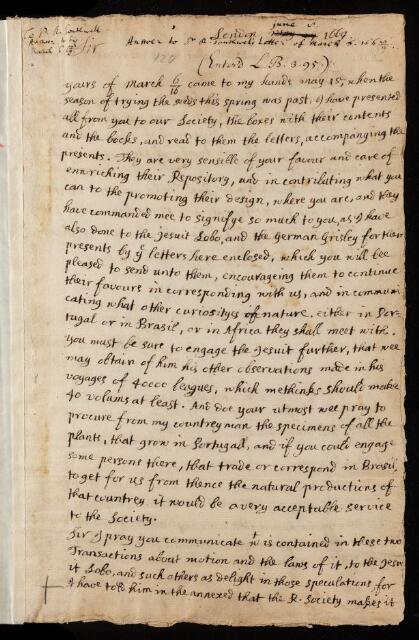 Henry Oldenburg, Letter, from Henry Oldenburg to Robert Southwell, dated at London, 08 June 1669, EL/O1/120, The Royal Society Archives, London, https://makingscience.royalsociety.org/items/el_o1_120/letter-from-henry-oldenburg-to-robert-southwell-dated-at-london, accessed on 23 January 2026