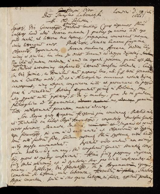 Henry Oldenburg, Henry Oldenburg, Letter, from Henry Oldenburg to Stanislaus Lubienietzki, dated at London, 29 July 1666, EL/O1/32, The Royal Society Archives, London, https://makingscience.royalsociety.org/items/el_o1_32/letter-from-henry-oldenburg-to-stanislaus-lubienietzki-dated-at-london, accessed on 08 November 2025
