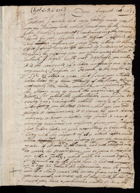Henry Oldenburg, Letter, from Henry Oldenburg to John Flamsteed, dated at London, 14 August 1673, EL/O2/126, The Royal Society Archives, London, https://makingscience.royalsociety.org/items/el_o2_126/letter-from-henry-oldenburg-to-john-flamsteed-dated-at-london, accessed on 08 March 2026