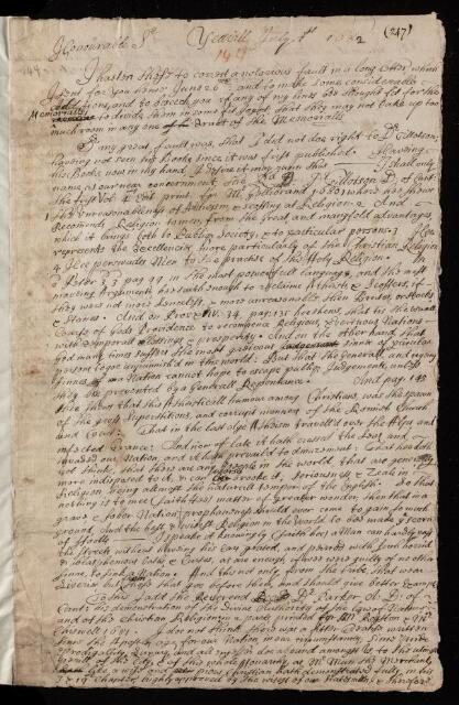 Discussing books by Dr Tillotson; concerning Parker's demonstration of the divine authoirty of the law of nature; concerning entries for the 'memorials'