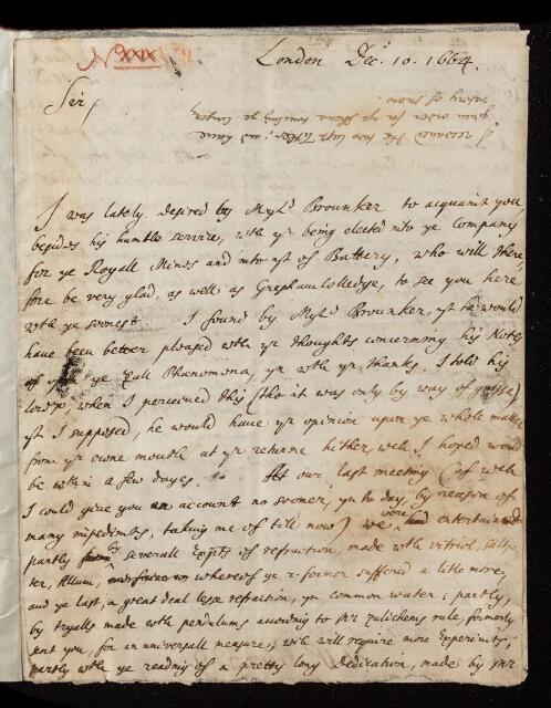 Henry Oldenburg, Letter, from Henry Oldenburg to Robert Boyle, dated at London, 10 December 1664, EL/OB/29, The Royal Society Archives, London, https://makingscience.royalsociety.org/items/el_ob_29/letter-from-henry-oldenburg-to-robert-boyle-dated-at-london, accessed on 20 April 2026