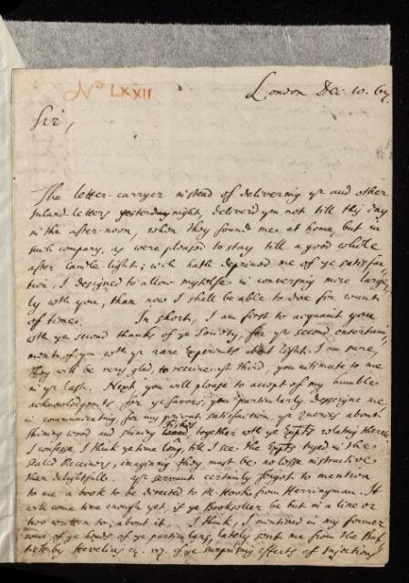 Henry Oldenburg, Letter, from Henry Oldenburg to Robert Boyle, dated at London, 10 December 1667, EL/OB/72, The Royal Society Archives, London, https://makingscience.royalsociety.org/items/el_ob_72/letter-from-henry-oldenburg-to-robert-boyle-dated-at-london, accessed on 20 January 2026