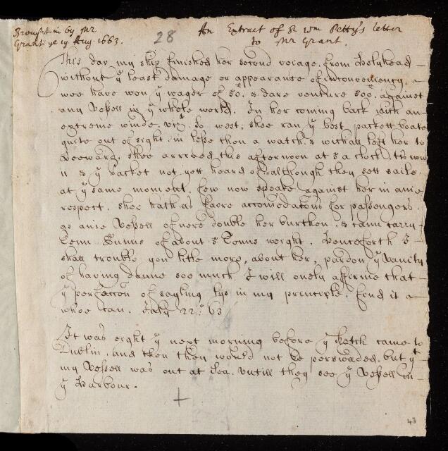 William Petty, Sir; William Petty, Extract of a letter, from William Petty to Mr Graunt, 01 January 1663, EL/P1/28, The Royal Society Archives, London, https://makingscience.royalsociety.org/items/el_p1_28/extract-of-a-letter-from-william-petty-to-mr-graunt, accessed on 13 March 2026