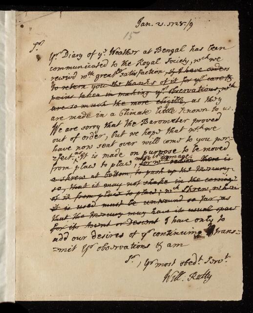 William Rutty, William Rutty, Letter, from William Rutty to Reverend Bellamy, 25 January 1729, EL/R2/15, The Royal Society Archives, London, https://makingscience.royalsociety.org/items/el_r2_15/letter-from-william-rutty-to-reverend-bellamy, accessed on 07 February 2026