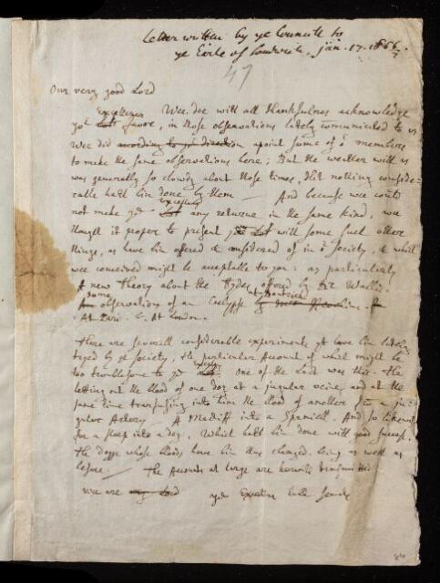 Letter, from the Council of the Royal Society to the Earl of Sandwich [Edward Montagu], 17 January 1667, EL/S1/47, The Royal Society Archives, London, https://makingscience.royalsociety.org/items/el_s1_47/letter-from-the-council-of-the-royal-society-to-the-earl-of-sandwich-edward-montagu, accessed on 14 December 2025