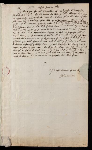 John Wallis, Letter, from John Wallis to Henry Oldenburg, dated at Oxford, 10 June 1671, EL/W1/122, The Royal Society Archives, London, https://makingscience.royalsociety.org/items/el_w1_122/letter-from-john-wallis-to-henry-oldenburg-dated-at-oxford, accessed on 19 January 2026