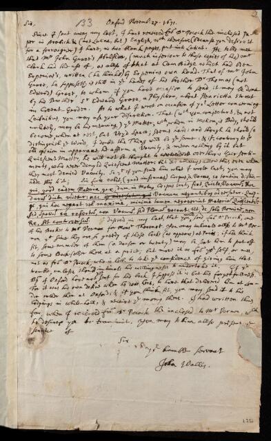 John Wallis, John Wallis, Letter, from John Wallis to Henry Oldenburg, dated at Oxford, 27 November 1671, EL/W1/133, The Royal Society Archives, London, https://makingscience.royalsociety.org/items/el_w1_133/letter-from-john-wallis-to-henry-oldenburg-dated-at-oxford, accessed on 09 November 2025