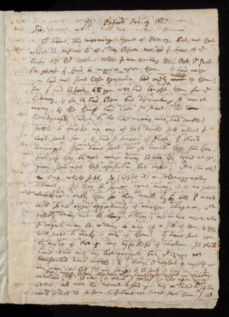 John Wallis, Letter, from John Wallis to Henry Oldenburg, dated at Oxford, 19 November 1668, EL/W1/70, The Royal Society Archives, London, https://makingscience.royalsociety.org/items/el_w1_70/letter-from-john-wallis-to-henry-oldenburg-dated-at-oxford, accessed on 13 March 2026
