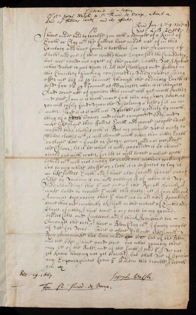 Joseph Walsh, Letter, from Joseph Walsh to Theodore de Vaux, 01 January 1667, EL/W3/10, The Royal Society Archives, London, https://makingscience.royalsociety.org/items/el_w3_10/letter-from-joseph-walsh-to-theodore-de-vaux, accessed on 09 February 2026
