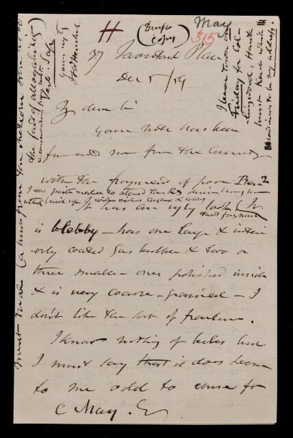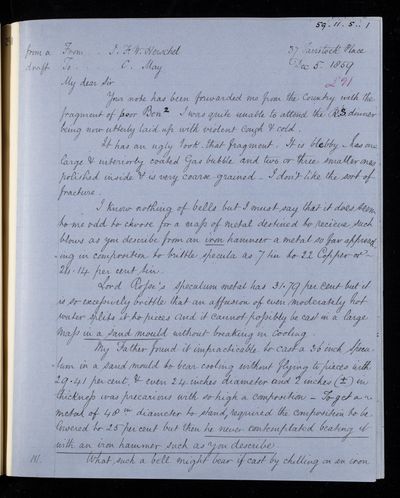 John Frederick William Herschel, Draft letter, from Sir John Herschel to Charles May, dated at 37 Tavistock Place, Russell Square, 5 December 1859, HS/12/315, The Royal Society Archives, London, https://makingscience.royalsociety.org/items/hs_12_315/draft-letter-from-sir-john-herschel-to-charles-may-dated-at-37-tavistock-place-russell-square, accessed on 08 February 2026