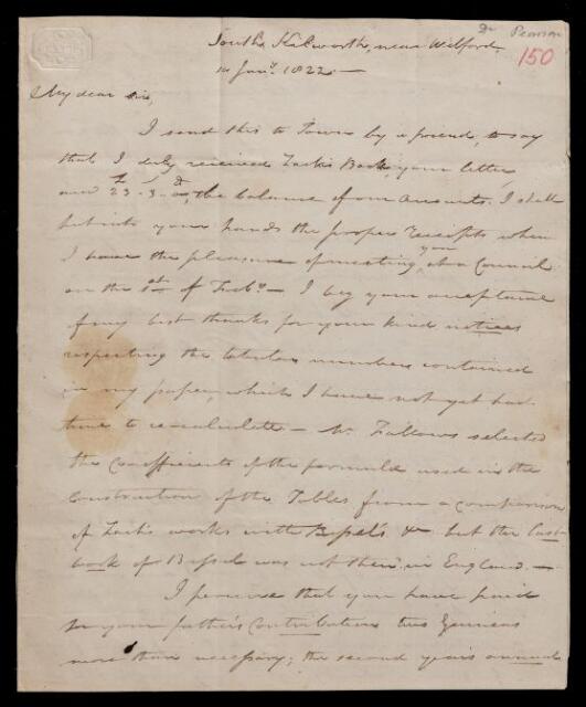 William Pearson, Letter, from William Pearson to Sir John Herschel, dated at Kilworth near Wilford, 14 January 1822, HS/14/150, The Royal Society Archives, London, https://makingscience.royalsociety.org/items/hs_14_150/letter-from-william-pearson-to-sir-john-herschel-dated-at-kilworth-near-wilford, accessed on 07 February 2026