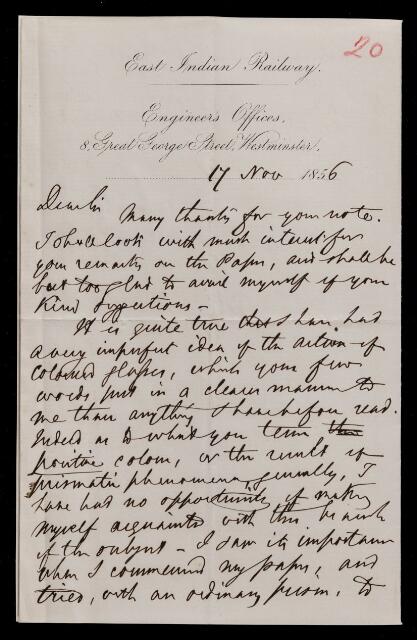 William Pole, Letter, from Sir William Pole to Sir John Herschel, dated at 8 Great George St., 17 November 1856, HS/14/20, The Royal Society Archives, London, https://makingscience.royalsociety.org/items/hs_14_20/letter-from-sir-william-pole-to-sir-john-herschel-dated-at-8-great-george-st, accessed on 13 March 2026