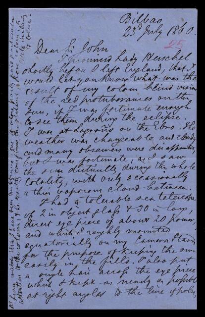 William Pole, Letter, from Sir William Pole to Sir John Herschel, dated at Bilbao, Spain, 23 July 1860, HS/14/25, The Royal Society Archives, London, https://makingscience.royalsociety.org/items/hs_14_25/letter-from-sir-william-pole-to-sir-john-herschel-dated-at-bilbao-spain, accessed on 07 March 2026