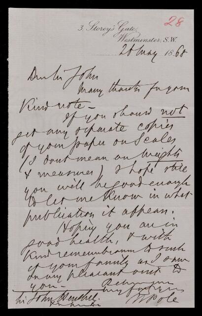William Pole, Letter, from Sir William Pole to Sir John Herschel, dated at 3 Storey's Gate, 26 May 1868, HS/14/28, The Royal Society Archives, London, https://makingscience.royalsociety.org/items/hs_14_28/letter-from-sir-william-pole-to-sir-john-herschel-dated-at-3-storeys-gate, accessed on 16 March 2026