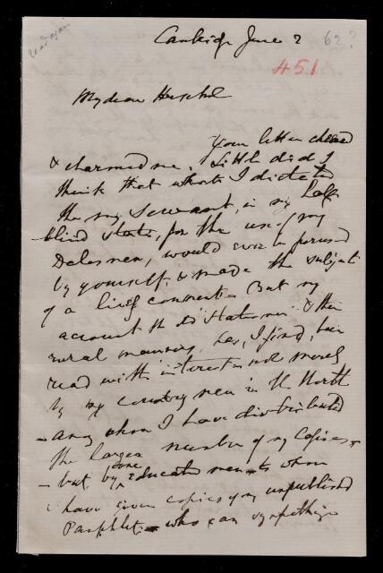 Adam Sedgwick, Adam Sedgwick, Letter, from Adam Sedgwick to Sir John Herschel, dated at Cambridge, 2 June 1862, HS/15/451, The Royal Society Archives, London, https://makingscience.royalsociety.org/items/hs_15_451/letter-from-adam-sedgwick-to-sir-john-herschel-dated-at-cambridge, accessed on 14 March 2026