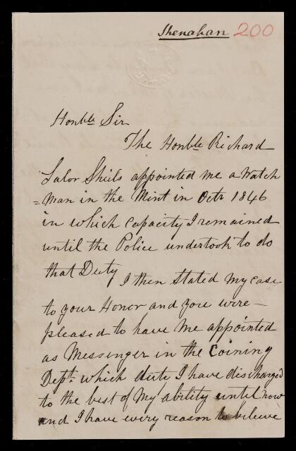 Letter, from Patrick Shanahan to Sir John Herschel, dated at 9 Fair St., Stepney