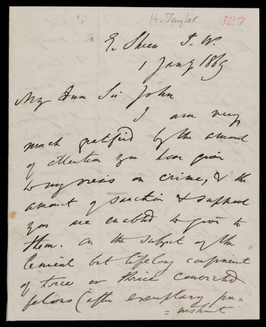 Henry Taylor, Letter, from Sir Henry Taylor to Sir John Herschel, dated at East Sheen, 1 January 1869, HS/17/327, The Royal Society Archives, London, https://makingscience.royalsociety.org/items/hs_17_327/letter-from-sir-henry-taylor-to-sir-john-herschel-dated-at-east-sheen, accessed on 15 January 2026