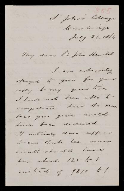 Isaac Todhunter, Letter, from Isaac Todhunter to Sir John Herschel, dated at St. John's, Cambridge, 21 July 1864, HS/17/355, The Royal Society Archives, London, https://makingscience.royalsociety.org/items/hs_17_355/letter-from-isaac-todhunter-to-sir-john-herschel-dated-at-st-johns-cambridge, accessed on 19 April 2026