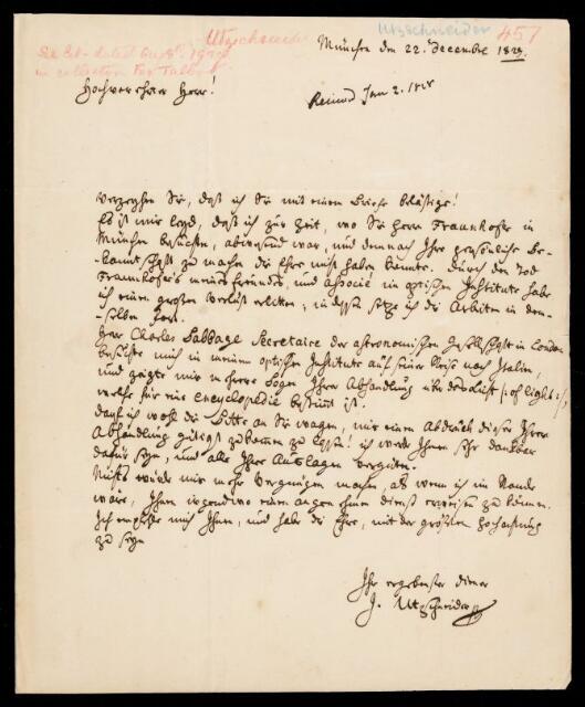 Letter, from Joseph von Utzschneider to Sir John Herschel, dated at Munich