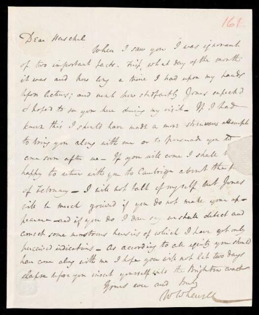 William Whewell, William Whewell, Letter, from William Whewell to Sir John Herschel, dated at Brighton, 20 January 1822, HS/18/161, The Royal Society Archives, London, https://makingscience.royalsociety.org/items/hs_18_161/letter-from-william-whewell-to-sir-john-herschel-dated-at-brighton, accessed on 12 February 2026