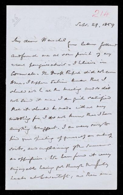 William Whewell, William Whewell, Letter, from William Whewell to Sir John Herschel, dated at Athenaeum, 29 September 1859, HS/18/214, The Royal Society Archives, London, https://makingscience.royalsociety.org/items/hs_18_214/letter-from-william-whewell-to-sir-john-herschel-dated-at-athenaeum, accessed on 12 February 2026