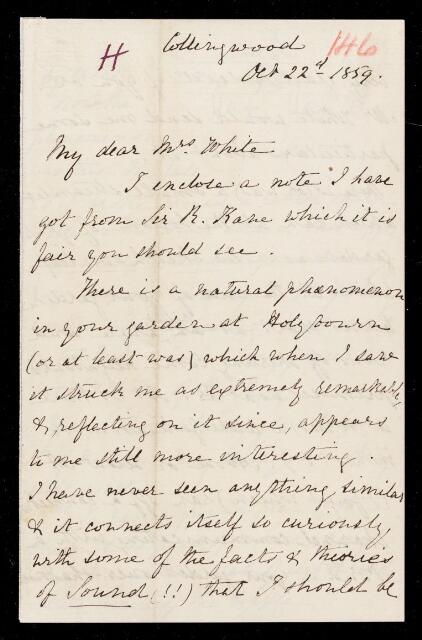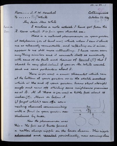 John Frederick William Herschel, Copy letter, from Sir John Herschel to Elizabeth White, dated at Collingwood, 22 October 1859, HS/19/146, The Royal Society Archives, London, https://makingscience.royalsociety.org/items/hs_19_146/copy-letter-from-sir-john-herschel-to-elizabeth-white-dated-at-collingwood, accessed on 05 December 2025