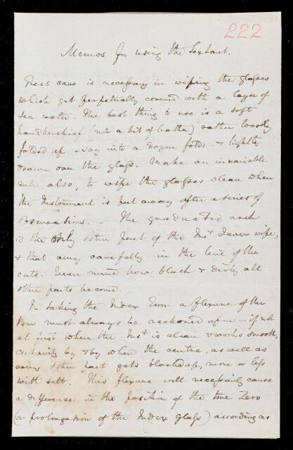 Basil Hall, Instructions on use of sextant, by Basil Hall, 24 April 1833, HS/19/222, The Royal Society Archives, London, https://makingscience.royalsociety.org/items/hs_19_222/instructions-on-use-of-sextant-by-basil-hall, accessed on 16 February 2026
