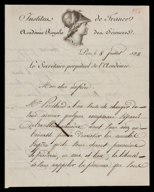 Letter, from D. Francois J. Arago to Sir John Herschel, dated at Paris