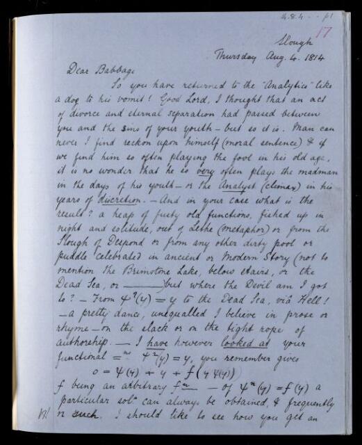 John Frederick William Herschel, Copy letter, from Sir John Herschel to Charles Babbage, 4 August 1814, HS/20/17, The Royal Society Archives, London, https://makingscience.royalsociety.org/items/hs_20_17/copy-letter-from-sir-john-herschel-to-charles-babbage, accessed on 08 March 2026
