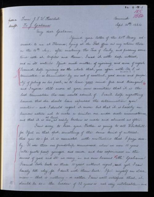 John Frederick William Herschel, Copy of draft letter, from Sir John Herschel to James Grahame, dated at Munich, 18 September 1824, HS/20/185, The Royal Society Archives, London, https://makingscience.royalsociety.org/items/hs_20_185/copy-of-draft-letter-from-sir-john-herschel-to-james-grahame-dated-at-munich, accessed on 12 March 2026