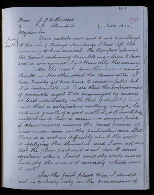 John Frederick William Herschel, Copy of draft letter, from Sir John Herschel to Francis Beaufort, June 1833, HS/21/138, The Royal Society Archives, London, https://makingscience.royalsociety.org/items/hs_21_138/copy-of-draft-letter-from-sir-john-herschel-to-francis-beaufort, accessed on 25 January 2026
