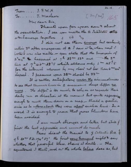 Copy letter, from Sir John Herschel to Thomas Maclear
