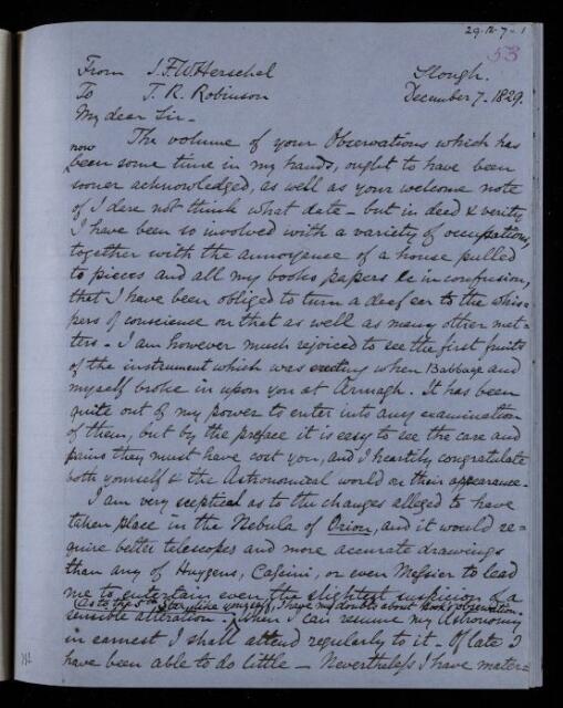John Frederick William Herschel, Copy letter, from Sir John Herschel to Thomas Romney Robinson, dated at Slough, 7 December 1829, HS/21/53, The Royal Society Archives, London, https://makingscience.royalsociety.org/items/hs_21_53/copy-letter-from-sir-john-herschel-to-thomas-romney-robinson-dated-at-slough, accessed on 17 February 2026