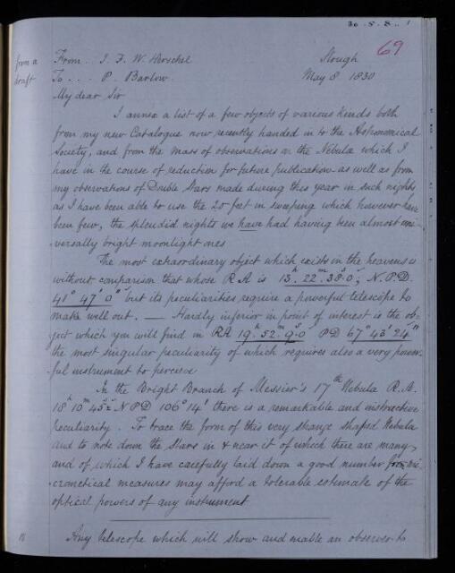 John Frederick William Herschel, Copy of letter, from Sir John Herschel to Peter Barlow, dated at Slough, 8 May 1830, HS/21/69, The Royal Society Archives, London, https://makingscience.royalsociety.org/items/hs_21_69/copy-of-letter-from-sir-john-herschel-to-peter-barlow-dated-at-slough, accessed on 17 January 2026
