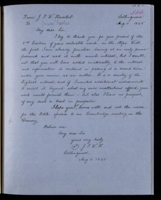 John Frederick William Herschel, Copy letter, from Sir John Herschel to James David Forbes, dated at Collingwood, 11 August 1845, HS/22/246, The Royal Society Archives, London, https://makingscience.royalsociety.org/items/hs_22_246/copy-letter-from-sir-john-herschel-to-james-david-forbes-dated-at-collingwood, accessed on 24 January 2026