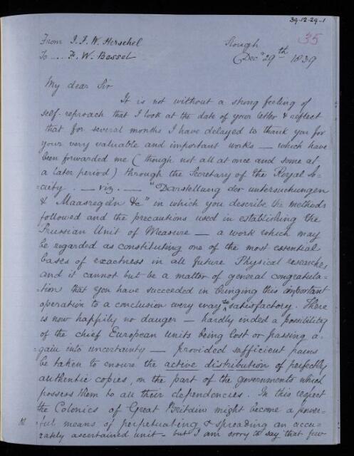 John Frederick William Herschel, Copy letter, from Sir John Herschel to Friedrich Wilhelm Bessel, dated at Slough, 29 December 1839, HS/22/35, The Royal Society Archives, London, https://makingscience.royalsociety.org/items/hs_22_35/copy-letter-from-sir-john-herschel-to-friedrich-wilhelm-bessel-dated-at-slough, accessed on 17 March 2026