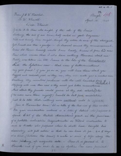 John Frederick William Herschel, Copy letter, from Sir John Herschel to William Whewell, dated at Slough, 12 April 1840, HS/22/48, The Royal Society Archives, London, https://makingscience.royalsociety.org/items/hs_22_48/copy-letter-from-sir-john-herschel-to-william-whewell-dated-at-slough, accessed on 08 March 2026