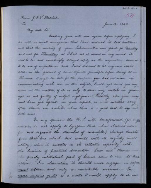 John Frederick William Herschel, Copy letter, from Sir John Herschel to James [David] Forbes, 10 June 1840, HS/22/54, The Royal Society Archives, London, https://makingscience.royalsociety.org/items/hs_22_54/copy-letter-from-sir-john-herschel-to-james-david-forbes, accessed on 09 March 2026