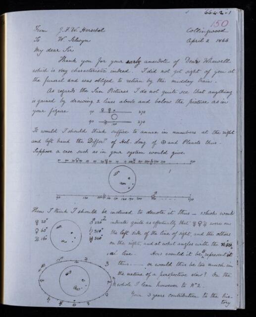 John Frederick William Herschel, Copy letter, from Sir John Herschel to William Selwyn, dated at Collingwood, 2 April 1866, HS/24/150, The Royal Society Archives, London, https://makingscience.royalsociety.org/items/hs_24_150/copy-letter-from-sir-john-herschel-to-william-selwyn-dated-at-collingwood, accessed on 10 December 2025