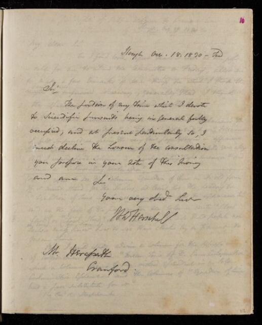 John Frederick William Herschel, Copy letter, from Sir John Herschel to John Herapath, dated at London, 18 October 1830, HS/25/1/10, The Royal Society Archives, London, https://makingscience.royalsociety.org/items/hs_25_1_10/copy-letter-from-sir-john-herschel-to-john-herapath-dated-at-london, accessed on 18 January 2026