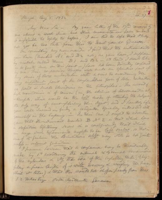 John Frederick William Herschel, Copy letter, from Sir John Herschel to James David Forbes, dated at Slough, 5 August 1832, HS/25/3/8, The Royal Society Archives, London, https://makingscience.royalsociety.org/items/hs_25_3_8/copy-letter-from-sir-john-herschel-to-james-david-forbes-dated-at-slough, accessed on 09 March 2026