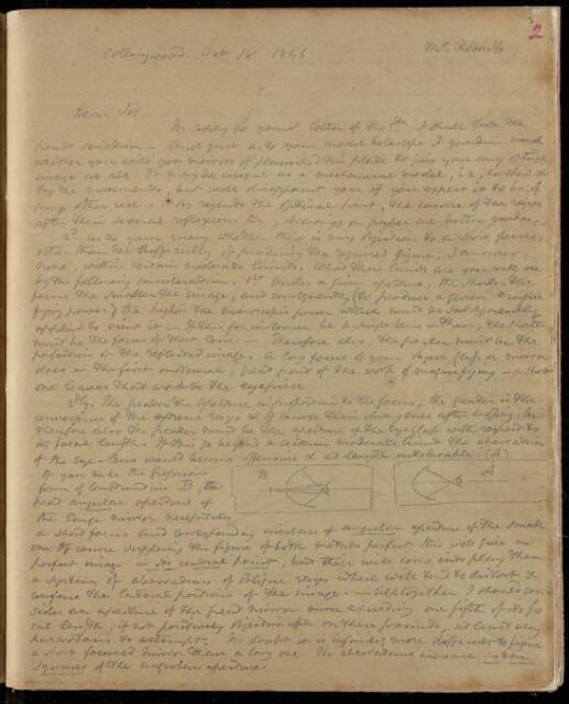 John Frederick William Herschel, Copy letter, from Sir John Herschel to Richard Roberts, dated at Collingwood, 18 October 1846, HS/25/7/2, The Royal Society Archives, London, https://makingscience.royalsociety.org/items/hs_25_7_2/copy-letter-from-sir-john-herschel-to-richard-roberts-dated-at-collingwood, accessed on 05 December 2025