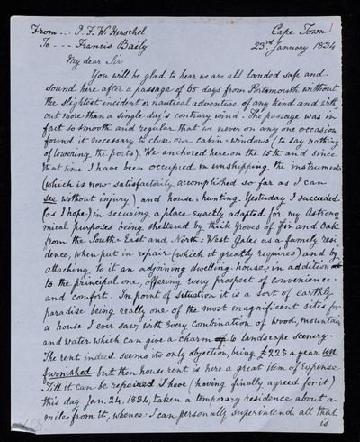 23 January 1834 Creator: John Frederick William Herschel , Sir; John Frederick William Herschel Reference number: HS/25/8/1 -