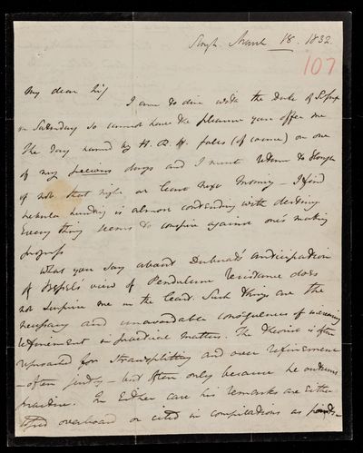 Draft letter in Herschel's hand with corrections. Is to dine with Frederick Augustus (Duke of Sussex). Regarding pendulums and French theorists. Will be pleased to see his paper on proper motion when ready. Regarding new amateur astronomers.