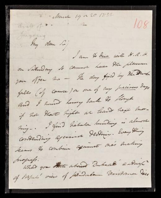 Draft letter, from Sir John Herschel to Francis Baily, dated at Slough